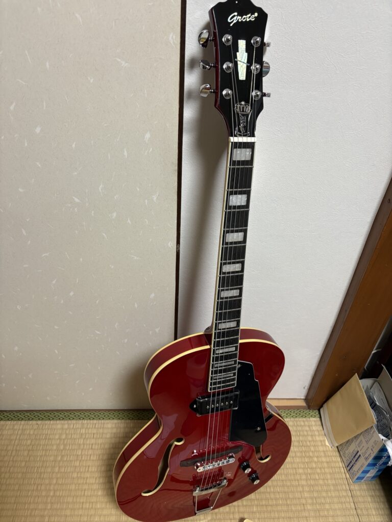 まずは、Grote Jazz Guitarはカッタウェイなしのフルアコタイプのジャズギター。軽いです。