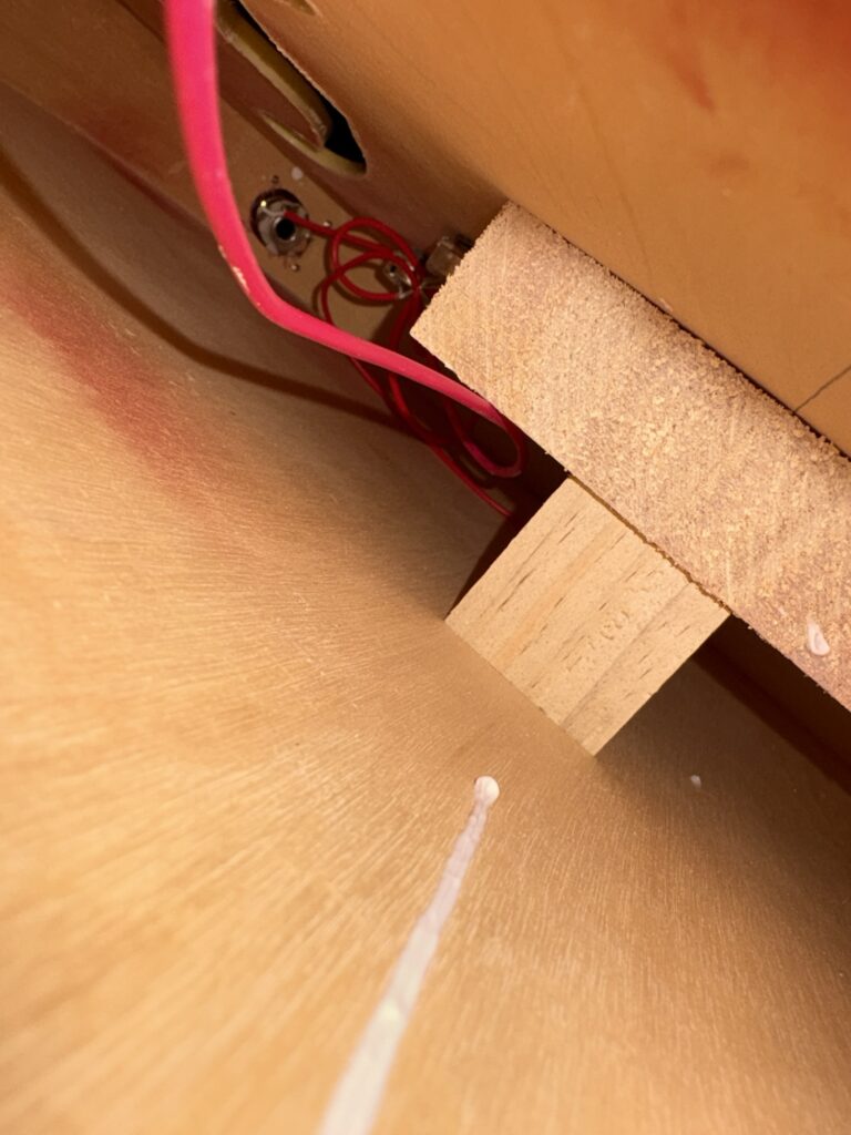 そしてボディ内部。一旦部品をバラしてピックアップ部の穴から撮ってみたら上の画像のような感じ。